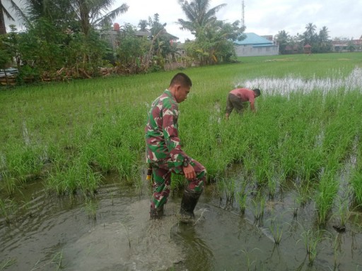 Pendampingan ini menyasar lahan milik Bapak Wahidin, seorang petani berusia 45 tahun dengan luas lahan 80 are. Serma Afzalul Rahman terjun langsung ke lapangan, memberikan motivasi serta membantu petani dalam proses penanaman ulang.
