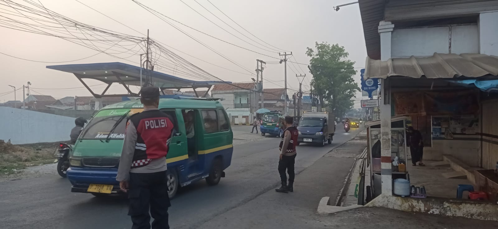 Personil unit samapta Polsek Rancaekek pelayanan pagi pengaturan lau lintas antisipasi kemacetan di sekitar perlintasan KA Rancaekek sebagai tindakan nyata dalam melayani, mengayomi dan melindungi masyarakat