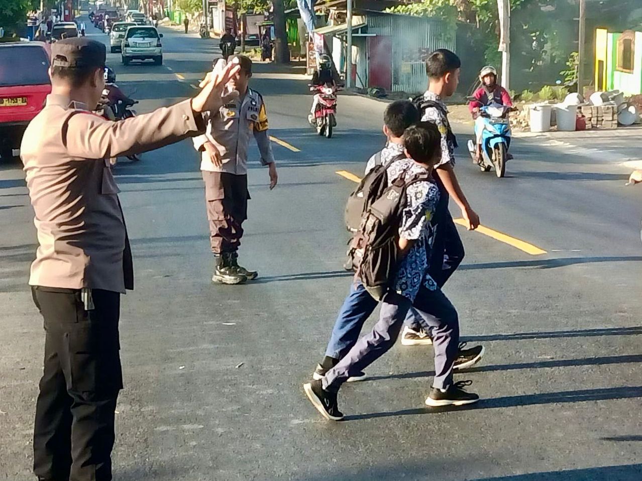 Seperti pada pagi ini, terlihat beberapa personil Polsek Polut nampak sibuk melaksanakan Commander Wish/Pengaturan Arus Lalulintas disimpang tiga jalan poros Palleko, dan membantu warga masyarakat serta anak-anak sekolah menyeberang jalan menuju tempat aktifitasnya.