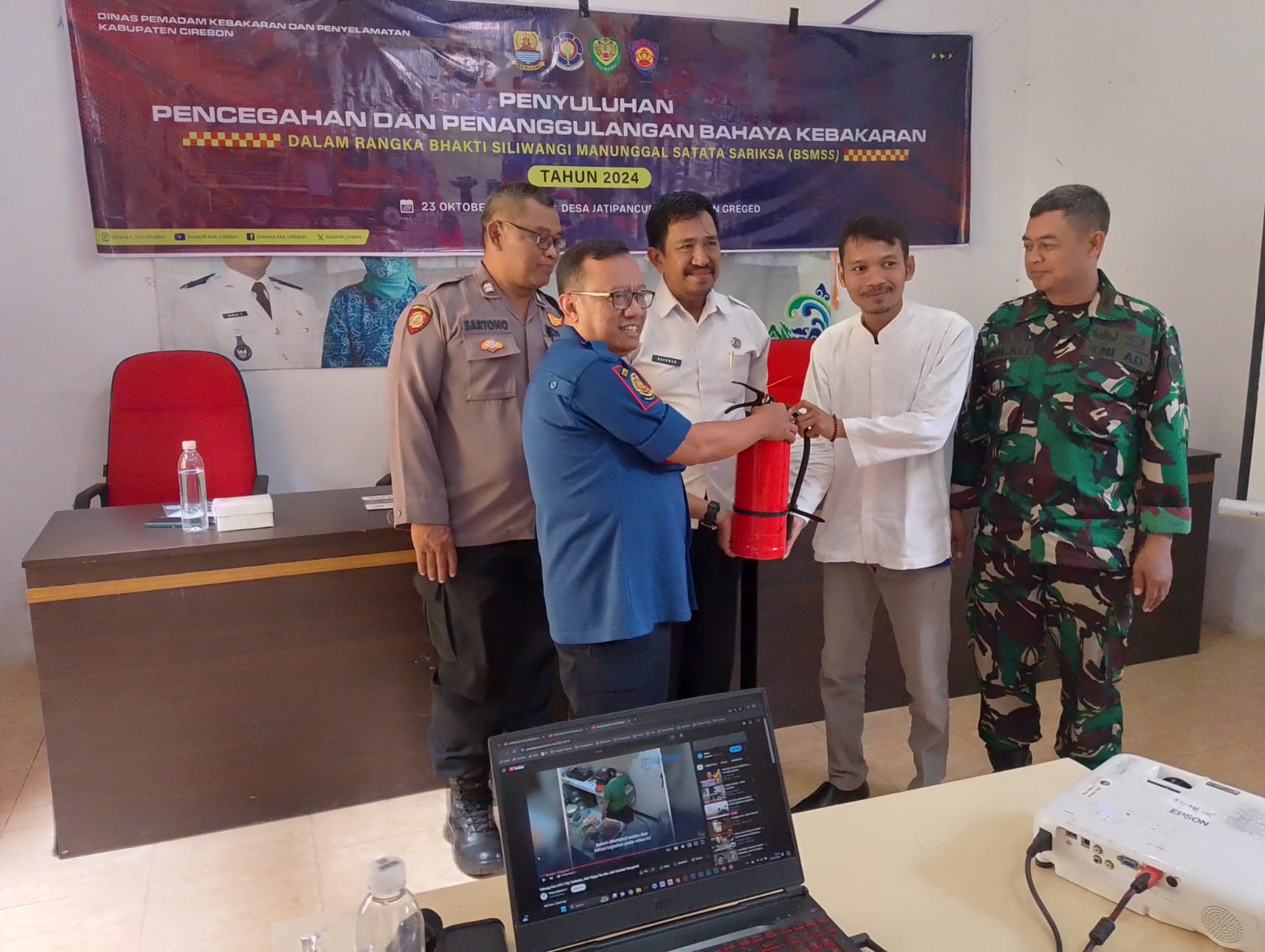 JJurnal Polri.MY Id.Cirebon.ati Pancur, 23 Oktober 2024 — Dinas Pemadam Kebakaran Kabupaten Cirebon melaksanakan program Bakti Siliwangi Manunggal Satata Sariksa (BSMSS) Non Fisik yang dilaksanakan di Desa Jati Pancur didampingi oleh Danramil 0620-12/Beber Kapten Czi Muhammad Ali, yang bertujuan untuk meningkatkan kesadaran masyarakat mengenai bahaya kebakaran. Kegiatan ini diadakan di lokasi Balai Desa Jati Pancur dan melibatkan partisipasi aktif dari masyarakat setempat.