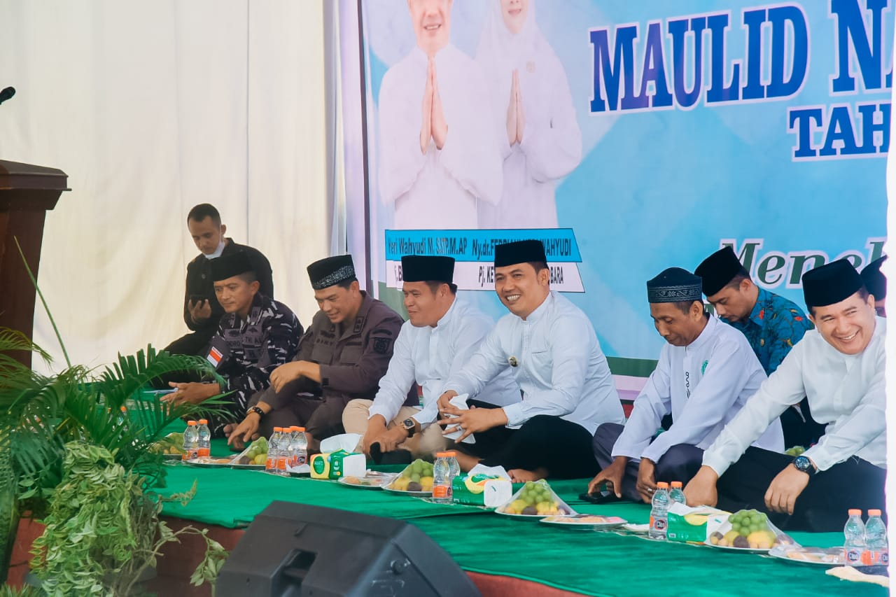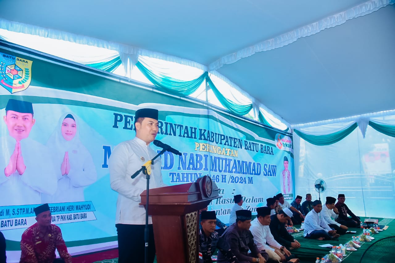 Jurnalpolri.com – Batu Bara Provinsi Sumatra – Guna mempererat Serahtuh Rahmi dan memeriahkan Momentum Maulid Nabi Muhamad Saw Pejabat (PJ) Bupati Batu Bara H.Heri Wahyudi Marpaung S.STP,MAP mengadiri Peringatan Maulid Nabi tepat nya di Simpang Dolok Kecamatan Datuk Lima Puluh ,pada hari Kamis 03/10/2024.