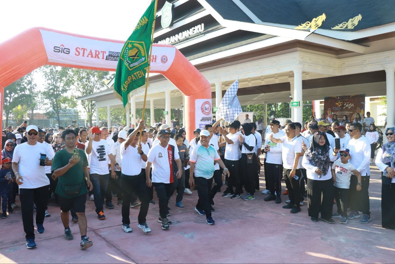 TAKALAR – Dalam rangka memperingati Hari Jadi Sulawesi Selatan ke 355 Tahun 2024 yang jatuh pada tanggal 19 Oktober 2024, Dandim 1426/Takalar Letkol Inf Faizal Amin, S.I.P menghadiri Gerak Jalan Santai serentak yang dilepas oleh Pj. Bupati Takalar Dr. Setiawan Aswad,.M.Dev,.Plg di Alun-Alun Panrannuangku Kelurahan Kalabbirang Kecamatan Pattallassang Kabupaten Takalar, Minggu 13/10/2024.