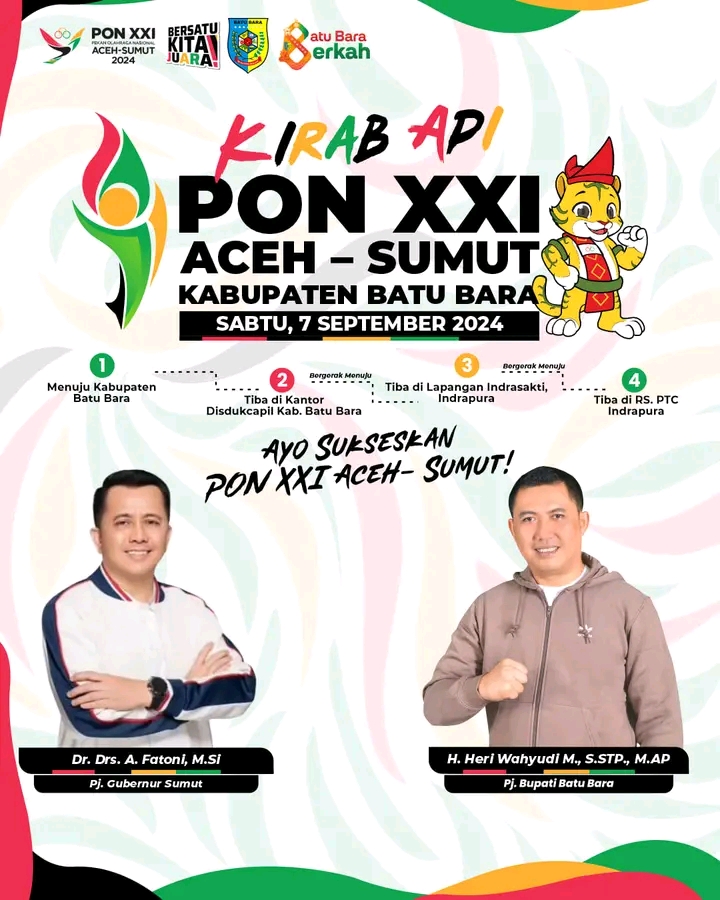 Informasi yang diterima dari Dinas Kominfo Pemakab Batu Bara ,Kurap Api PON XXI Aceh Sumut akan menuju Kabupaten Batu Bara pada hari Sabtu 7 September 2024