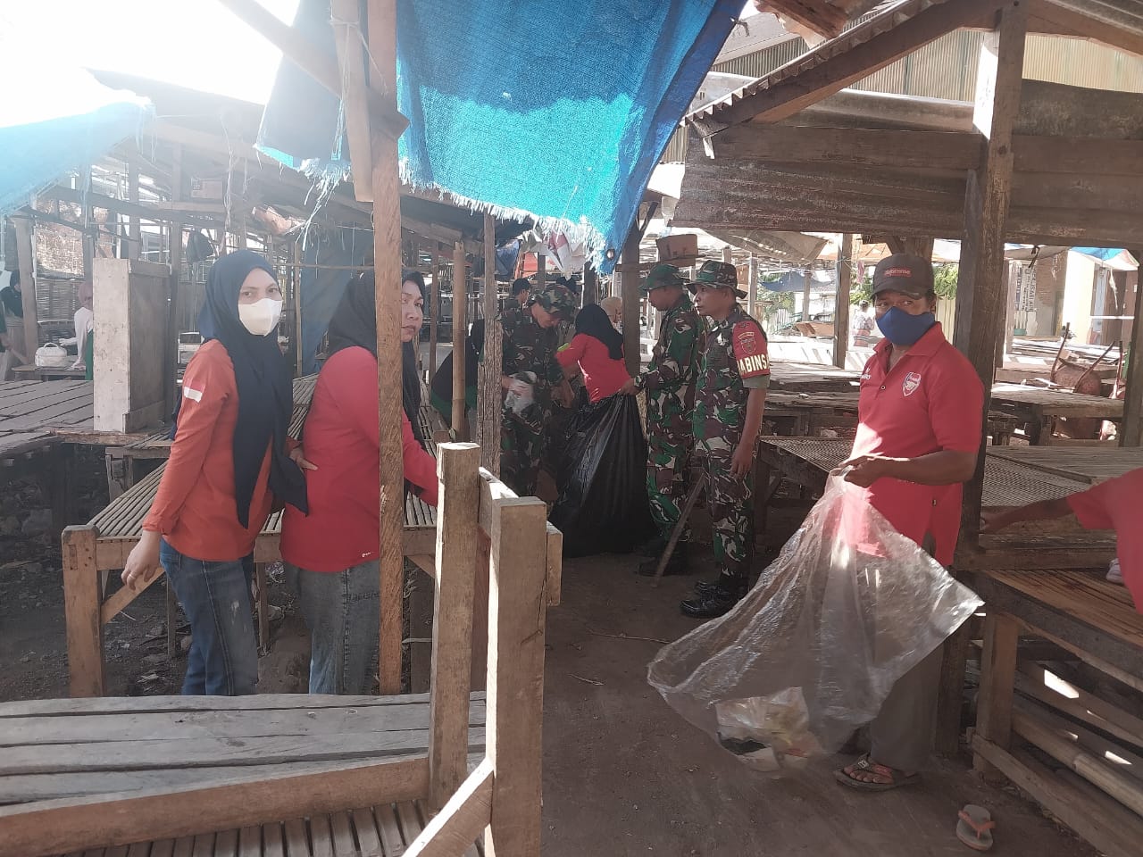 Dengan menggunakan berbagai peralatan kebersihan seperti sapu lidi, sekop, Motor dan Truk pengangkut sampah anggota TNI berbaur dengan mahasiswa dan masyarakat membersihkan sampah di Pasar dan saluran air agar terlihat lebih bersih, “ungkap Bati Tuud. (Pendim 1426)