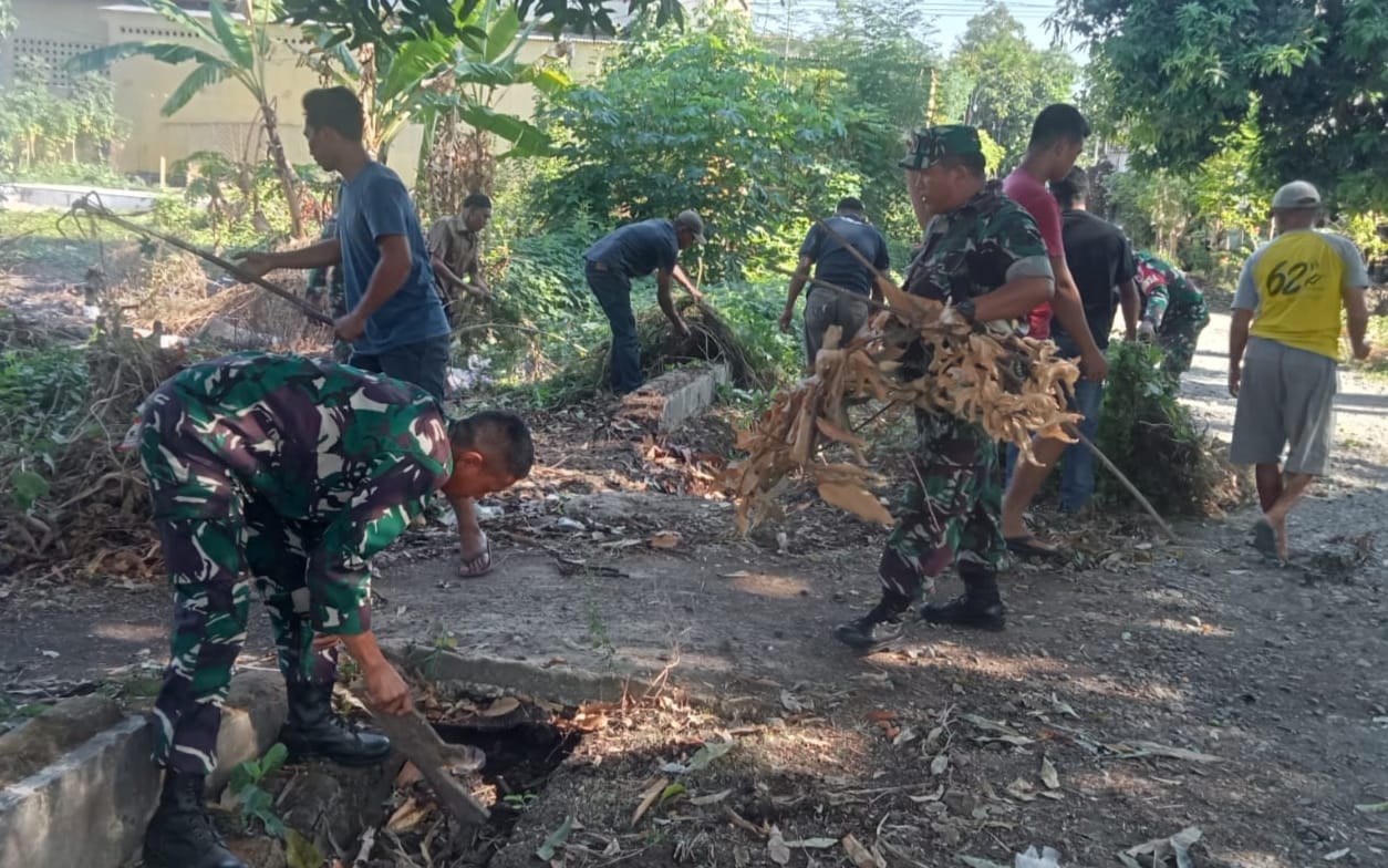Personel Koramil 1426-05/Marbo Kodim 1426 Takalar, Bersama Masyarakat Kerja Bakti Bersihkan Selokan