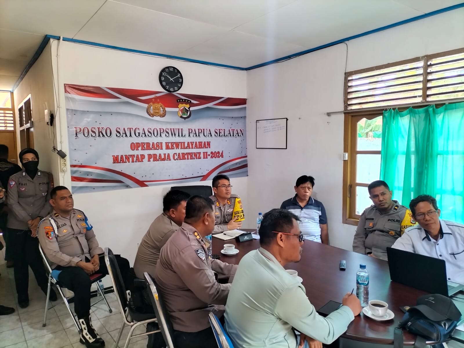 Papua – Pelaksanaan Rapat Anev Mingguan yang dipimpin oleh Ka Ops Operasi Mantap Praja Cartenz (OMPC) II 2024 Polda Papua Kombes Pol Andi Anugrah, S.I.K. yang diikuti oleh Para Pejabat Operasi Mantap Praja Cartenz baik tingkat Polda maupun Polres Jajaran termasuk personel OMPC II 2024 Wilayah Papua Selatan bertempat di Kantor LO Polda Wilayah Papua Selatan.