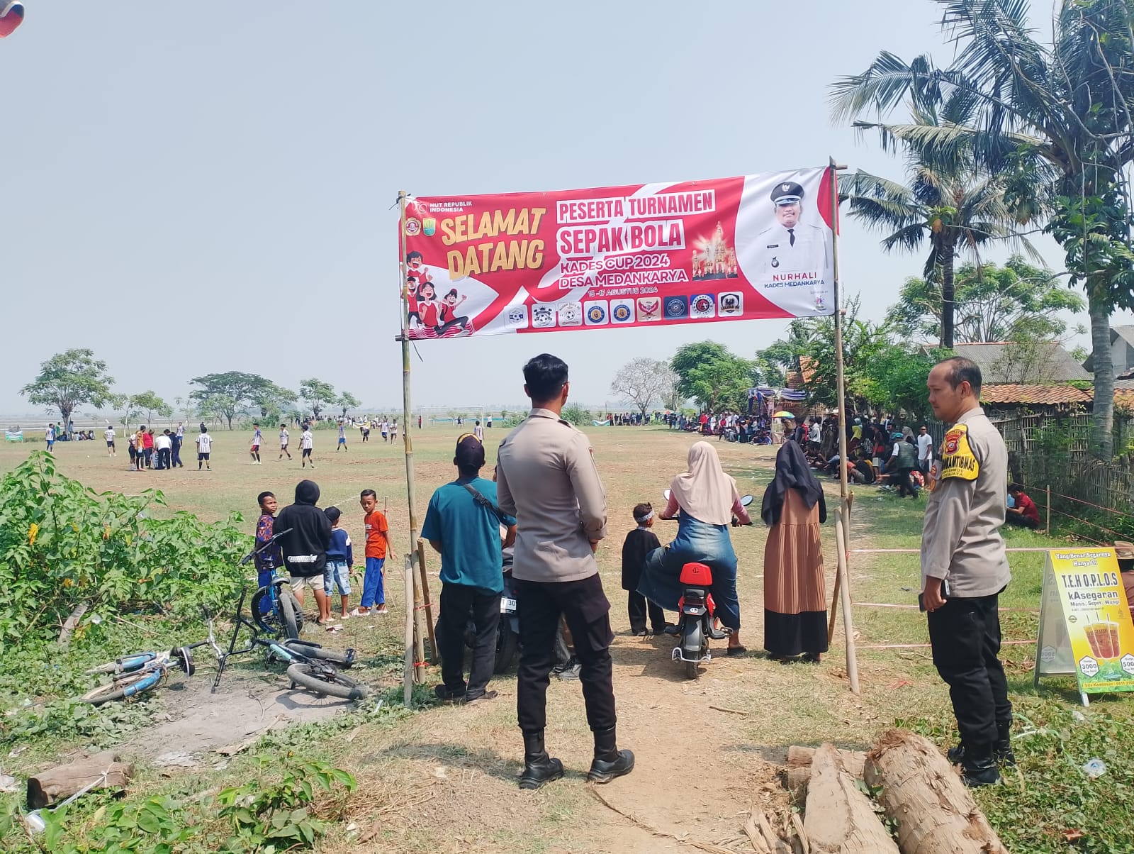 Personel Polsek Tirtajaya melaksanakan PAM Turnamen Sepak Bola Kades Cup Desa Medankarya