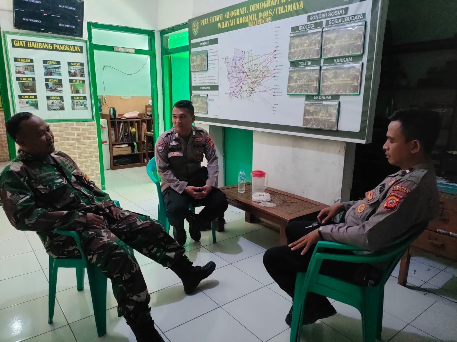 Jalin Kebersamaan dan perkuat Sinergitas TNI Polri Personil patroli Połsek Cilamaya , gelar sambang ke Kantor Koramil Cilamaya, 01 September 2024 sekira Pukul 09: 30 Wib.