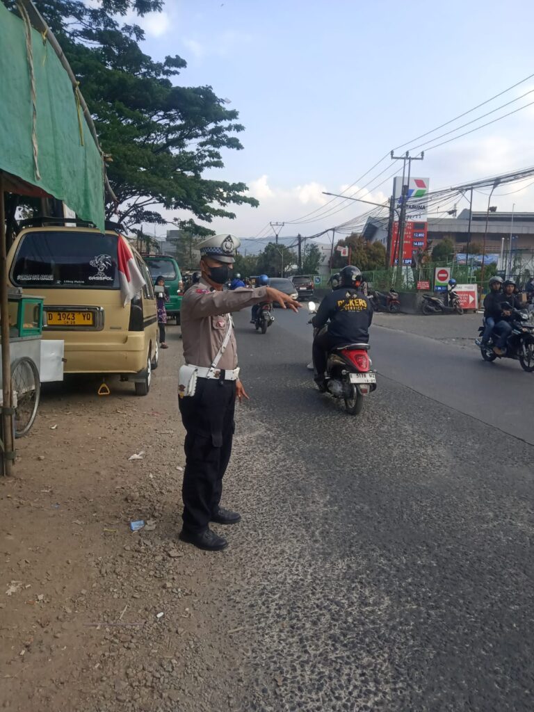 JP – DAYEUHKOLOT – Personil Unit Lantas Polsek Dayeuhkolot Polresta Bandung gelar pengaturan lalulintas sore hari dalam mengantisipasi kemacetan jelang bubaran karyawan perusahan, di jalan Moch Toha Dayeuhkolot Kabupaten Bandung Jumat, (6/9/2024)