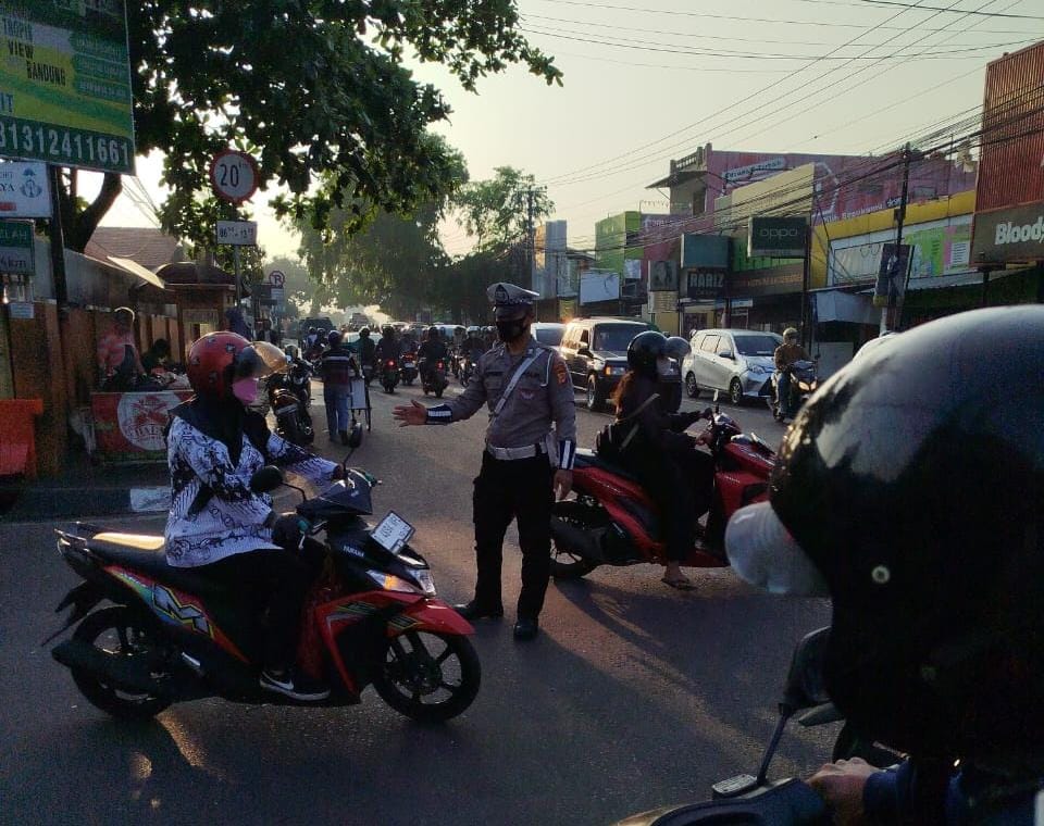 Personil Unit Lantas Polsek Antapani Lakukan Pengaturan Lalulintas Guna Antisipasi Kemacetan.