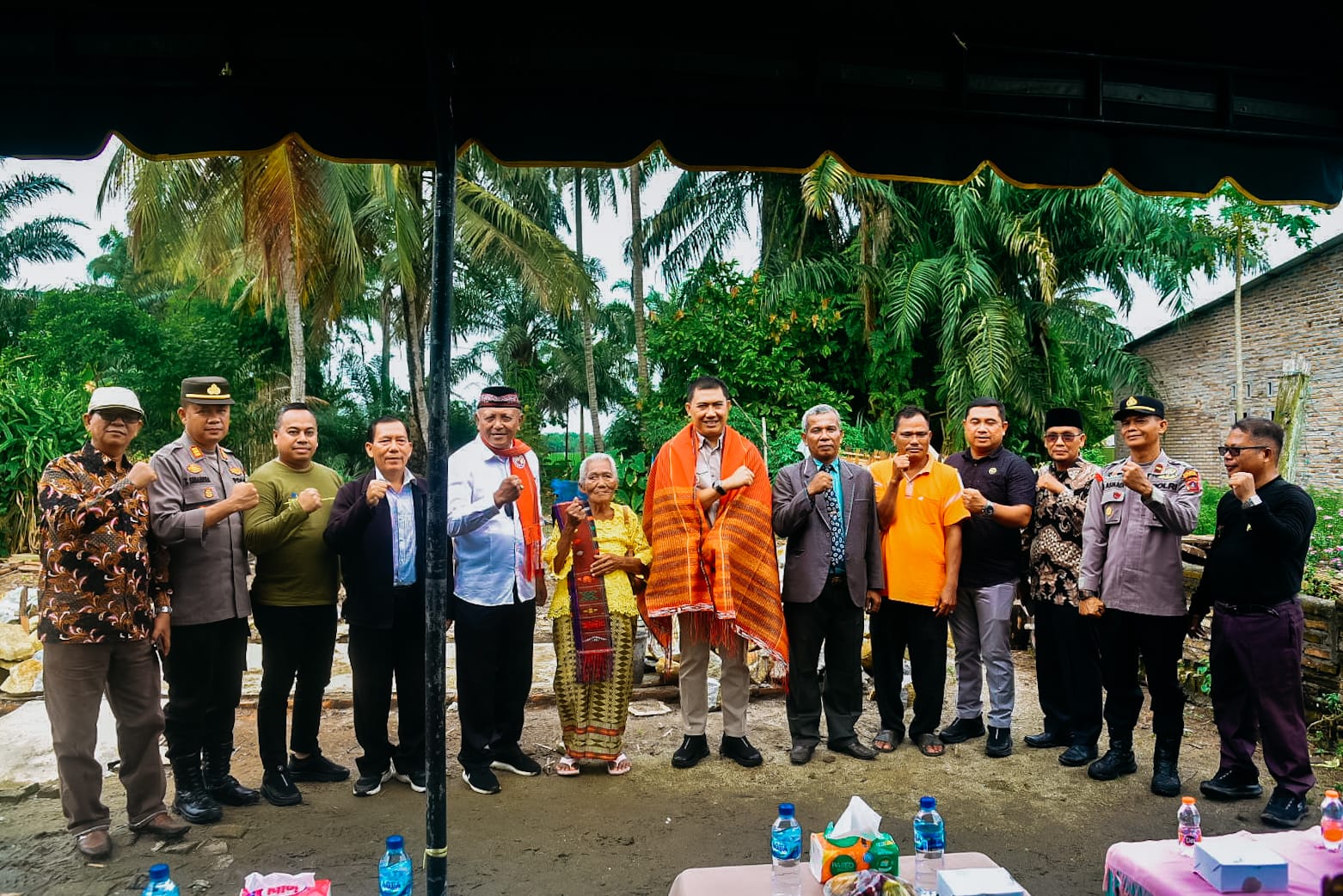Sebagai bentuk Pengormatan dan rasyasukur ,Keluarga Nainggolan memberikan Kain ulos kepada Pj.Bupati Heri Marpaung sebelum acara Peletakan batu Pertama dimulai