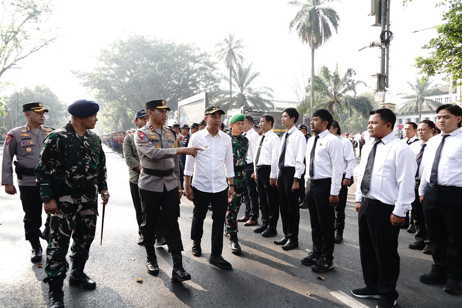 JP. Kapolda Jabar Irjen Pol. Dr. Akhmad Wiyagus, S.I.K., M.Si., M.M. bersama PJ. Gubernur Jawa Barat dan Kasdam III/Siliwangi serta Forkopimda melaksanakan Apel Gelar Pasukan Operasi Mantap Praja Lodaya 2024 di Depan Gedung Sate Kota Bandung, Selasa (20/8/2024).