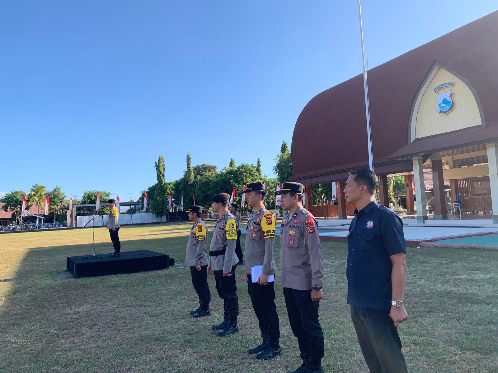 Dalam arahannya, Kombes Pol Suprayitno menekankan agar setiap personel diwajibkan untuk melaksanakan pengamanan dan pengecekan yang ketat terhadap orang dan barang di pelabuhan penyebrangan serta bandara.