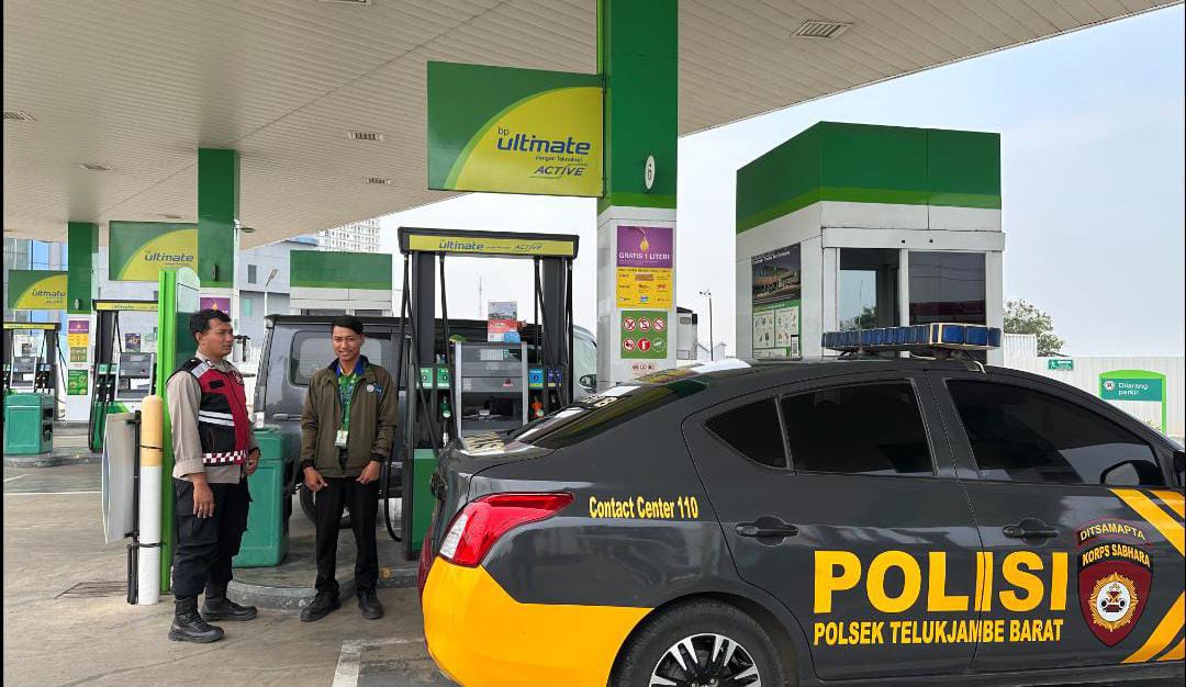 JP Polres Karawang – Personel Samapta Polsek Telukjambe Barat melaksanakan patroli di obyek vital (Obvit) SPBU BP AKR di Desa Margakaya, Kecamatan Telukjambe Barat, Karawang, Jawa Barat, Selasa (22/10/2024).