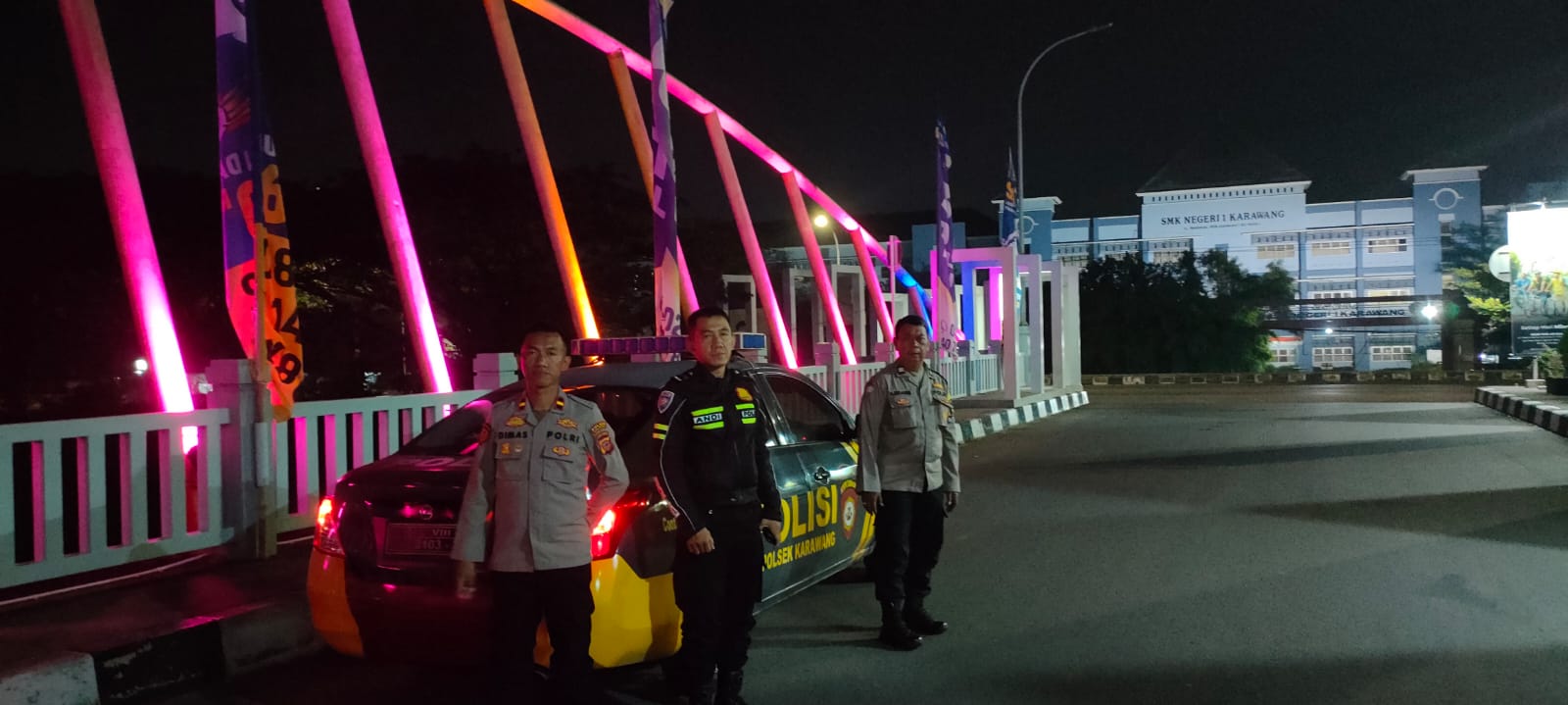 JP Polres Karawang – Polsek Karawang Kota melaksanakan patroli antisipasi C3 dan gangguan kamtibmas di Jembatan SMKN 1 Karawang di Kelurahan Tanjungpura, Kecamatan Karawang Barat, Kabupaten Karawang, Senin (21/10/2024)