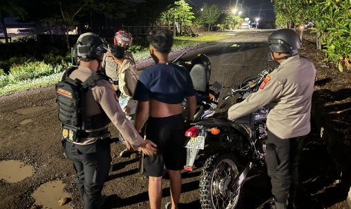 Polisi jajaran Polres Sidrap sisir lokasi rawan premanisme saat patroli malam KRYD, Senin (7/7/2025).
