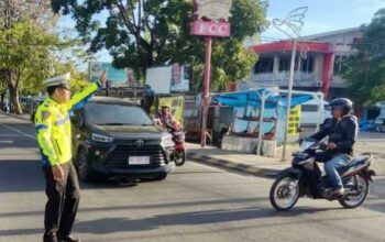 Dengan gestur tenang namun tegas, ia dan rekan-rekannya berdiri di titik-titik strategis yang dikenal rawan kepadatan, seperti simpang tiga utama dan akses keluar-masuk kawasan pasar. Satu demi satu kendaraan diarahkan agar arus tetap mengalir lancar.