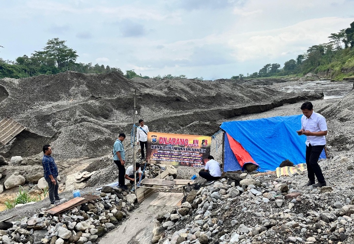 “Pemasangan Banner larangan ini untuk mengingatkan ke warga agar tidak melakukan penambangan liar,” kata Kanit Tindak Pidana Tertentu Iptu Yuno Sukaito