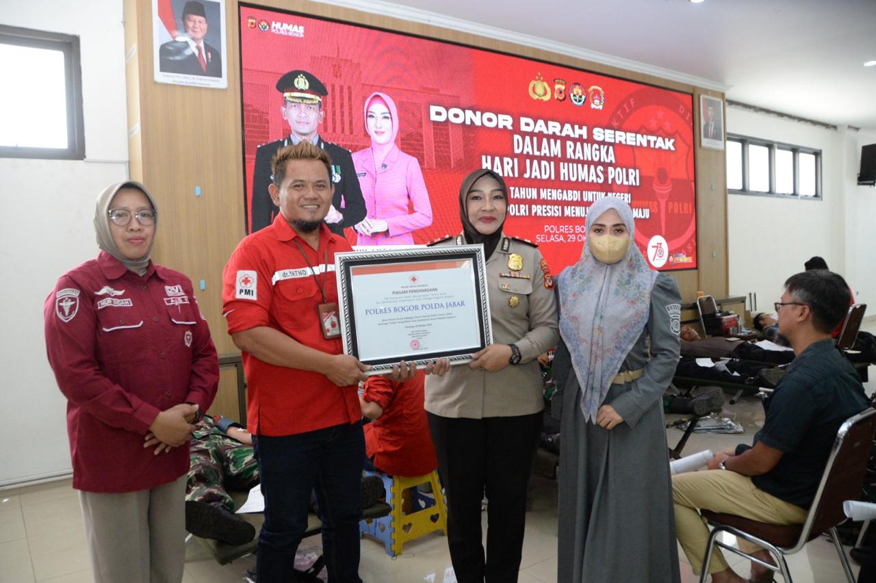 Yang sangat luar biasa pada kegiatan donor darah kali ini, Polres Bogor mendapatkan Piagam Penghargaan Apresiasi dari PMI atas Peran Serta Sebagai Dobor Darah Rutin Tahun 2024 yang diterima langsung Iptu Desi Triana Kasi Humas Polres Bogor(Ar)
