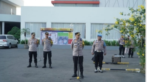 Dalam apel tersebut, personel gabungan dari Polres Cirebon Kota dan Polresta Cirebon, termasuk Pamen, Pama, serta Bintara, mengikuti pengarahan yang disampaikan oleh Kompol Rizky Adi Saputro.