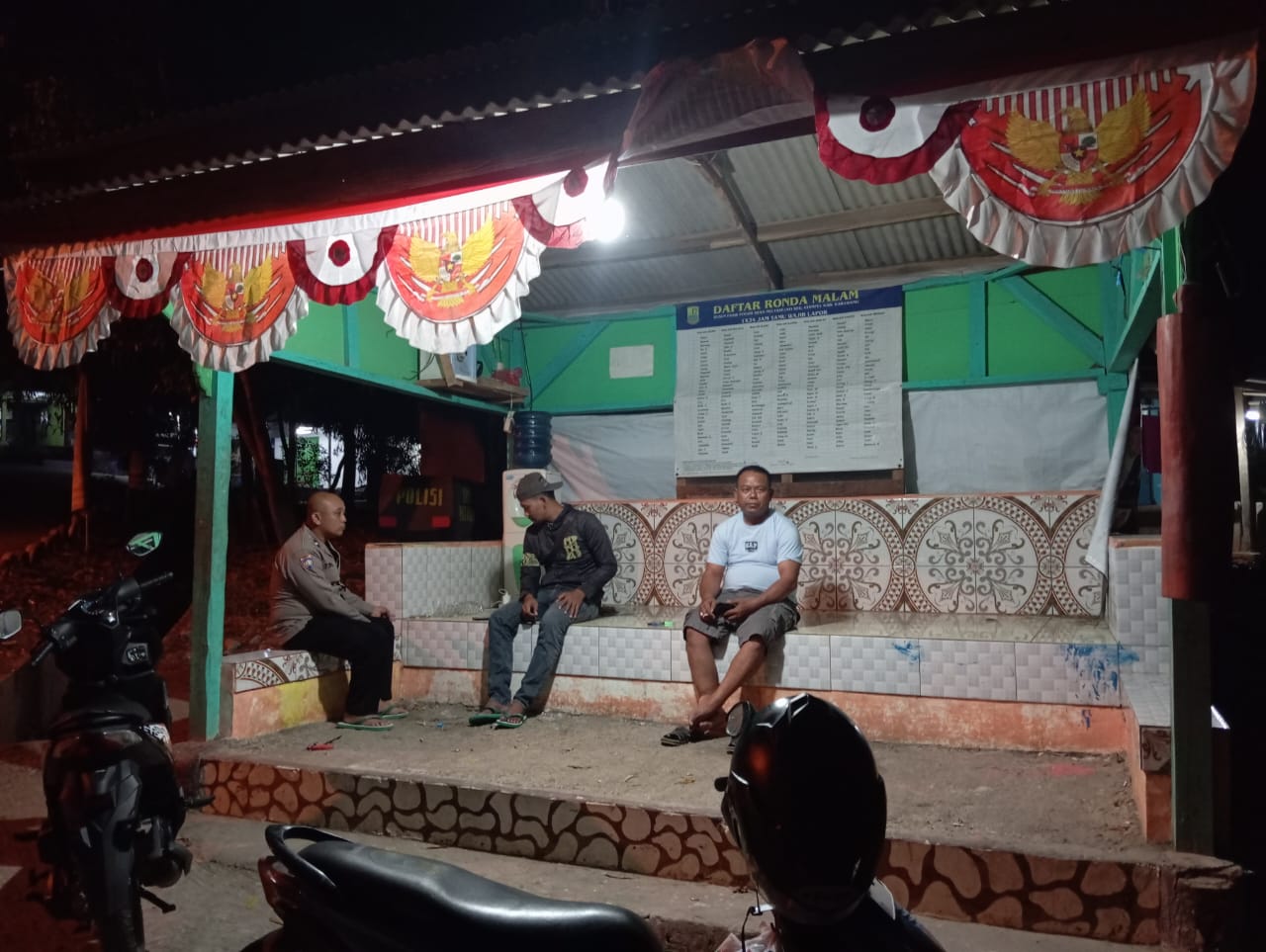 JP – Karawang – Dalam upaya menjaga keamanan dan ketertiban di wilayah Poskamling/Pos Ronda Desa Mulyasejati Kec. Ciampel Kab. Karawang, Bhabinkamtibmas Aipda Tono bekerja sama secara sinergis. Melakukan himbauan kepada Petugas Ronda malam Desa Mulyasejati terkait arahan perintah Kasat Binmas Polres Karawang giat ngawangkong di Pos kamling, pembinaan  kepada masyarakat  yang sedang melaksanakan Ronda/Piket di desa Mulyasejati serta memberikan arahan-arahan, Rabu (04/09/2024).