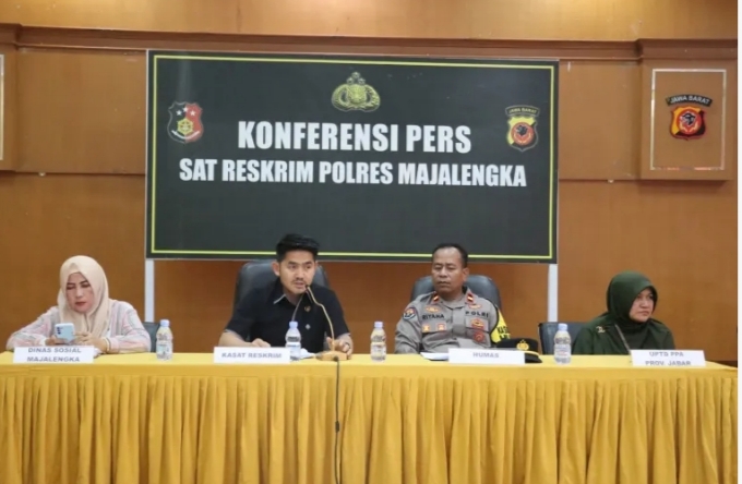 Konferensi Pers ini dipimpin oleh Kasat Reskrim Polres Majalengka, AKP Tito Witular, S.E., yang didampingi oleh Kasubsi PIDM Sie Humas IPDA Riyana, S.Sos., dari Dinas UPTD PPA Prov Jabar, Dinas Sosial Majalengka, Tim Bapas Majalengka dan 2DP3AKB Majalengka.