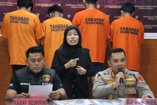 Dalam konferensi pers di Aula Promoter, Kapolres Maros AKBP Douglas Mahendrajaya, S.H., S.I.K., M.I.K., M.Tr.Opsla mengumumkan identitas ketujuh tersangka yang diamankan saat ditangkap tanpa perlawanan oleh tim gabungan Polres Maros di Dusun Barambang, Desa Bonto Mate’ne, Kecamatan Mandai, Kabupaten Maros, pada Jumat dini hari (30/5/2025): AD (16), MI (16), AY (23), MM (23), MT (17), MI (19), dan AR (19).