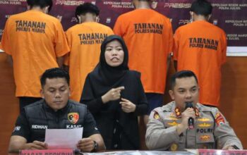 Dalam konferensi pers di Aula Promoter, Kapolres Maros AKBP Douglas Mahendrajaya, S.H., S.I.K., M.I.K., M.Tr.Opsla mengumumkan identitas ketujuh tersangka yang diamankan saat ditangkap tanpa perlawanan oleh tim gabungan Polres Maros di Dusun Barambang, Desa Bonto Mate’ne, Kecamatan Mandai, Kabupaten Maros, pada Jumat dini hari (30/5/2025): AD (16), MI (16), AY (23), MM (23), MT (17), MI (19), dan AR (19).