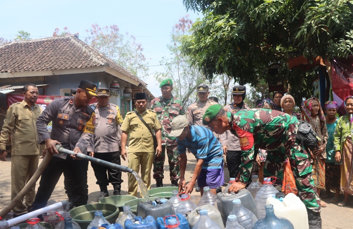 “Kegiatan ini merupakan bagian dari kepedulian Polres Pasuruan terhadap masyarakat yang mengalami kekurangan air bersih akibat musim kemarau,” kata Kasat Binmas Polres Pasuruan, Iptu Sunarti.