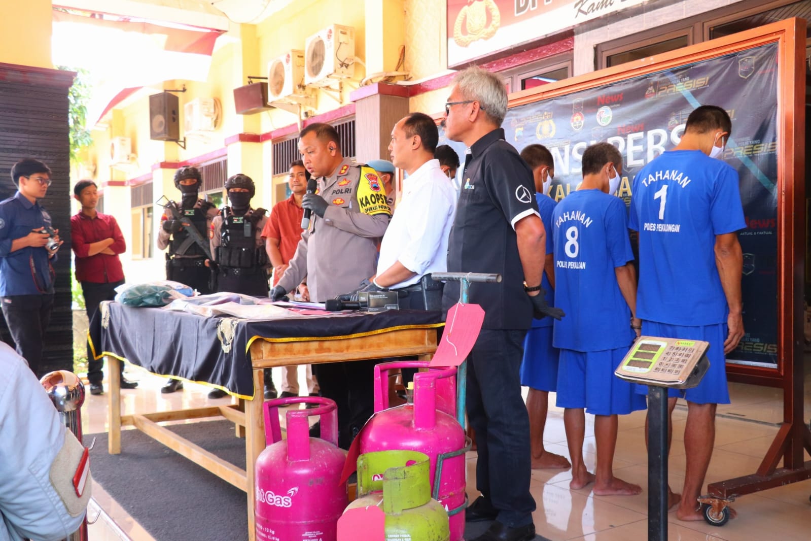 Dalam konferensi pers yang digelar di depan lobi Mapolres, Selasa (27/8/2024), Kapolres Pekalongan AKBP Doni Prakoso Widamanto, S.I.K, menyampaikan bahwa pihaknya berhasil mengungkap kasus tindak pidana penyalahgunaan niaga dan angkutan bahan bakar gas elpiji 3 kg, dimana tersangka MB modus operasinya mengoplos gas elpiji dengan cara disuntik.