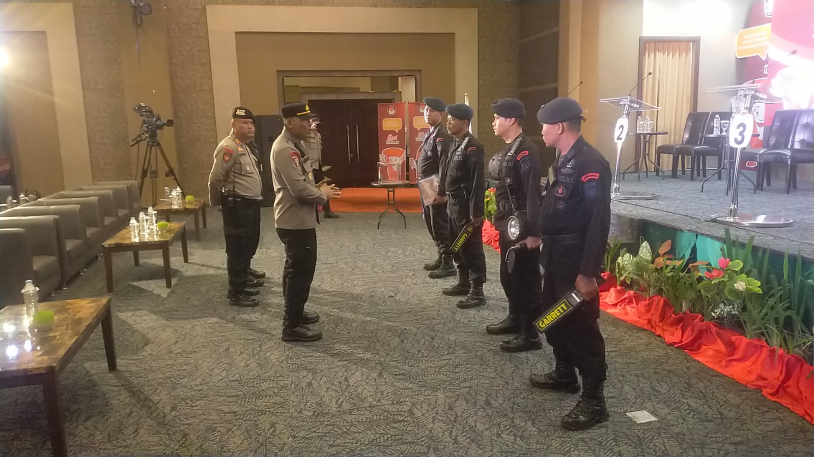 Setiba dilokasi Katim Jibom AIPDA Nuryanto, S.Sos.I berkoordinasi dengan Kabag Ops AKP. Ilham Harahap SH., MH kemudian melakukan Sterilisasi mulai Panggung Acara, Mimbar, Lighting, Sound System, Dekorasi, Sofa, Meja, Kursi, pot bunga, Toilet, dan Area Seputaran Luar Ballroom.