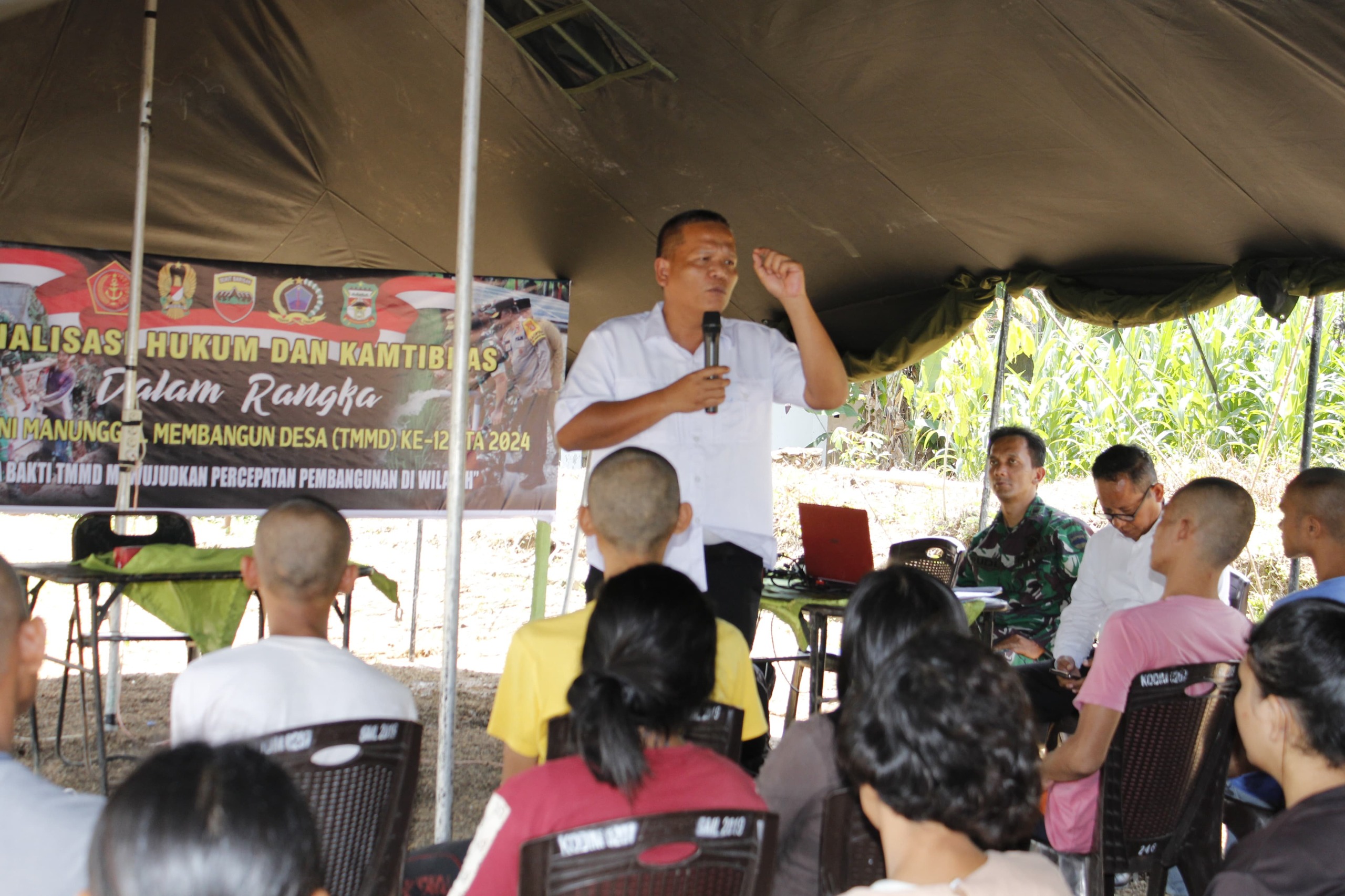 JP. PEMATANG SIANTAR-SUMATERA UTARA. Polres Pematangsiantar melalui Kasikum AKP S. S. Sagala SH bersama KasubsiBankum Sikum IPTU MP. Simanjuntak, SH dan PS. Kasubsiluhkum Sikum AIPTU B. Situngkir, SH melaksanakan Sosialisasi Hukum dan Kamtibnas di kegiatan TNI Manunggal membangun Desa (TMMD) ke -122 TA.2024, Jalan Rindung Kelurahan Sibatu Batu Kecamatan Siantar Martoba Kota Pematangsiantar pada Senin 14 Oktober 2024 pagi pukul 08.00 Wib.
