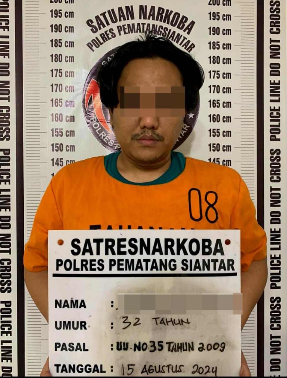 Kapolres Pematangsiantar AKBP Yogen Heroes Baruno SH, SIH melalui Kasat Resnarkoba AKP JH. Pasaribu SH, MH pada hari Sabtu 17 Agustus 2024 mengatakan pria diduga pengedar itu berinisial SKS (32) warga Jalan Tanah Jawa Gg. Batu Bara Kelurahan Melayu Kecamatan Siantar utara Kota Pematangsiantar.