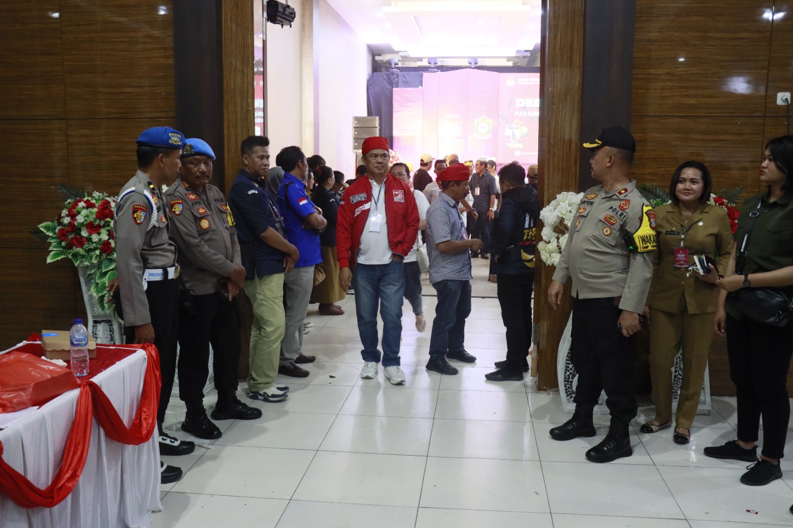 JP. Poso – Kepolisian Resor (Polres) Poso memastikan keamanan Debat Publik kedua Pasangan Calon Bupati dan Wakil Bupati Poso Tahun 2024 yang digelar di ballroom Ancyra Poso City Mall, Selasa (5/11/2024).