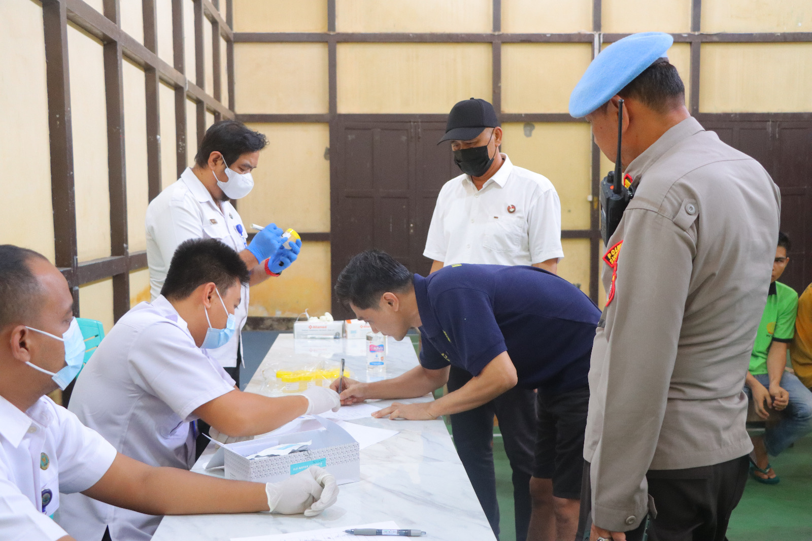 Polres Sintang bersama BNN menggelar sosialisasi dan tes urine terhadap tahanan Lapas Kelas IIB Sintang, Rabu (13/11) Pagi.