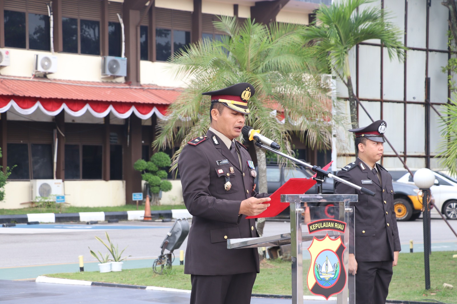 Kabag Ops Polresta Barelang Kompol ZAC Tamba, SH bertindak sebagai Inspektur Upacara, Perwira Upacara Kompol Benhur Gultom, Sebagai Komandan upacara Ipda Jimmy G. Aritonang, SH dan sebagai petugas upacara dari Personil Polsek Sekupang.