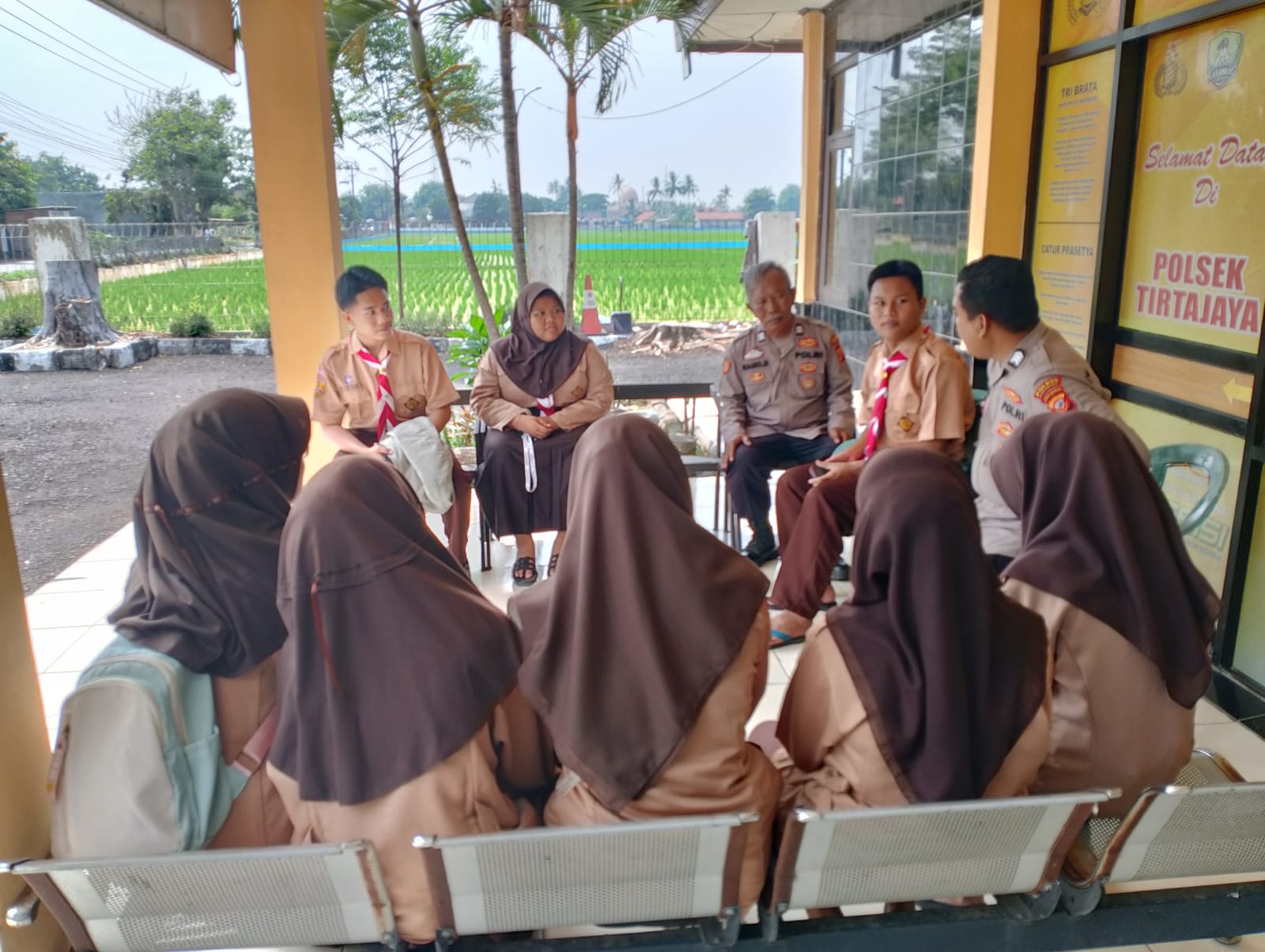 Dengan hal tersebut, Anggota Piket Polsek Tirtajaya Aiptu Nano Sugiono menerima kunjungan tersebut secara humanis dan menerangkan secara jelas dan membantu apa yang dibutuhkan oleh para Siswa-siswi tersebut.