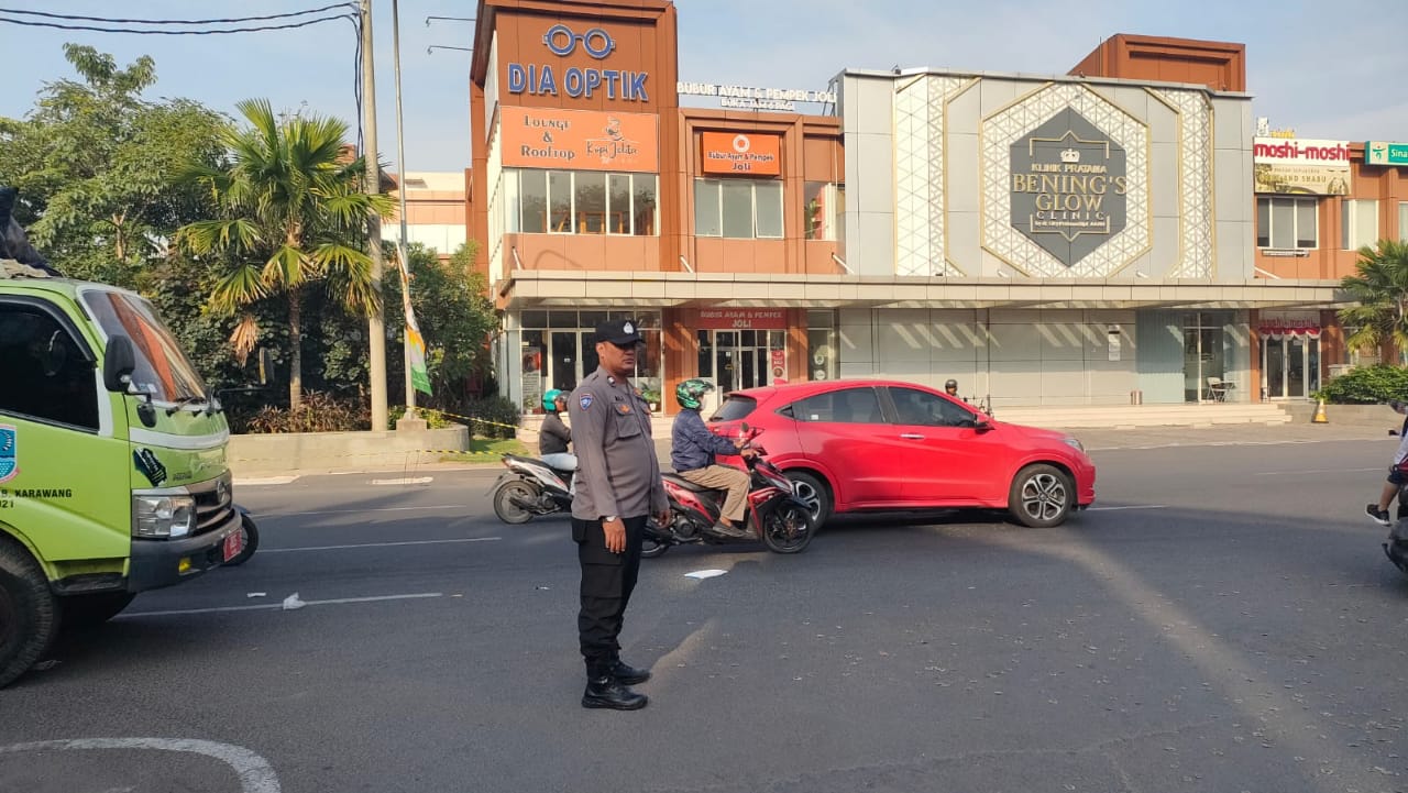 Polri Tingkatkan Giat Pengaturan Arus Lalu Lintas Upaya Urai Kemacetan di Bundaran Tugu Padi Karawang
