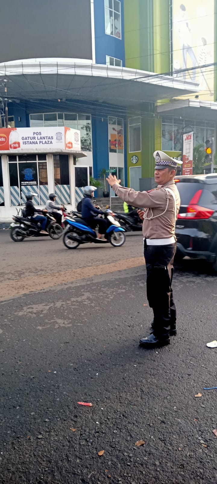 JP. Polrestabes Bandung, Polda Jabar – Polsek Cicendo. Personil Unit Lalu Lintas Polsek Cicendo Polrestabes Bandung melaksanakan pelayanan masyarakat berupa Pengawasan dan pengaturan arus lalu lintas di beberpa titik rawan seperti di Pos Istana Plaza di sekitar Jl. Hos. Cokroaminoto – Jl. Pajajaran Kota Bandung.