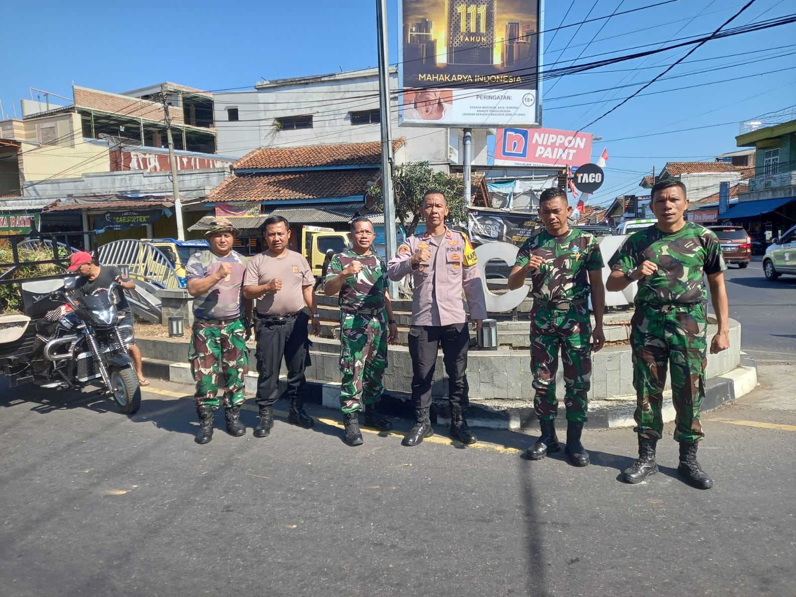 Polsek Cikijing dan Koramil 1705 Bersinergi, Bersihkan Taman Pertigaan Cikijing untuk Lingkungan Sehat