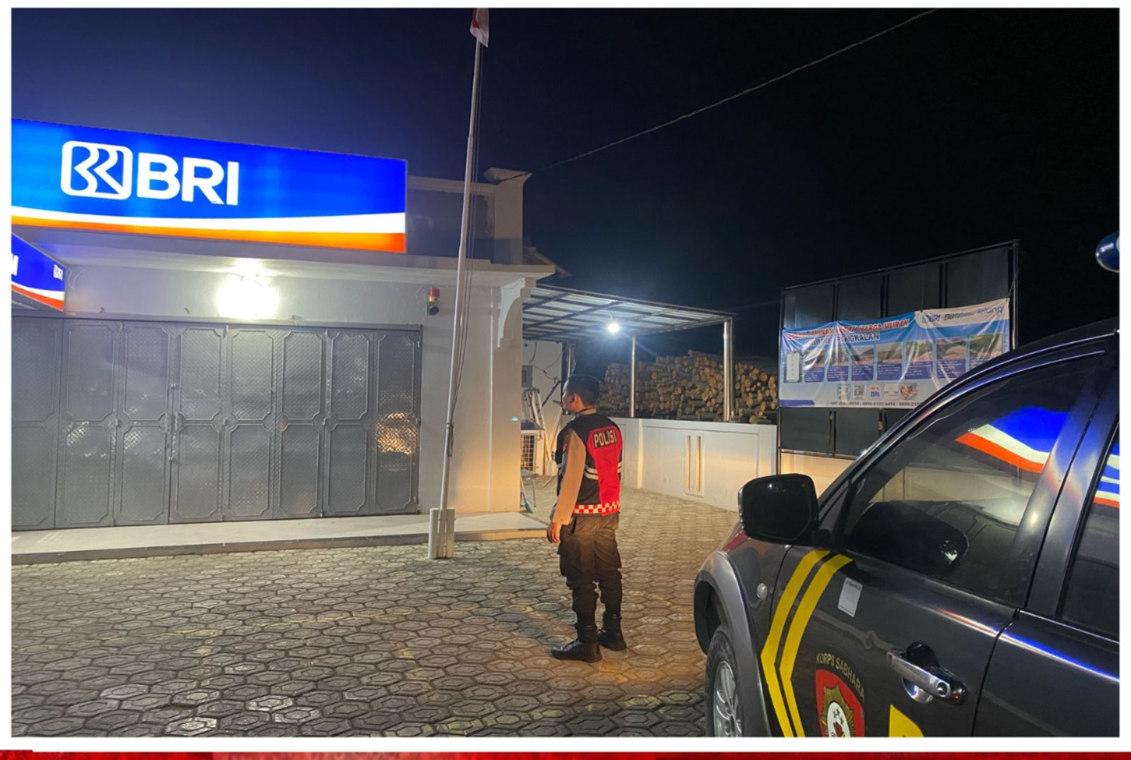 JP – Polres Karawang – Anggota Samapta Polsek Pangkalan melaksanakan patroli Perbankan di Bank BRI Kampung Kaum Desa Jatilaksana, Kecamatan Pangkalan, Karawang, Jawa Barat, Jumat (18/10/2024) dini hari.