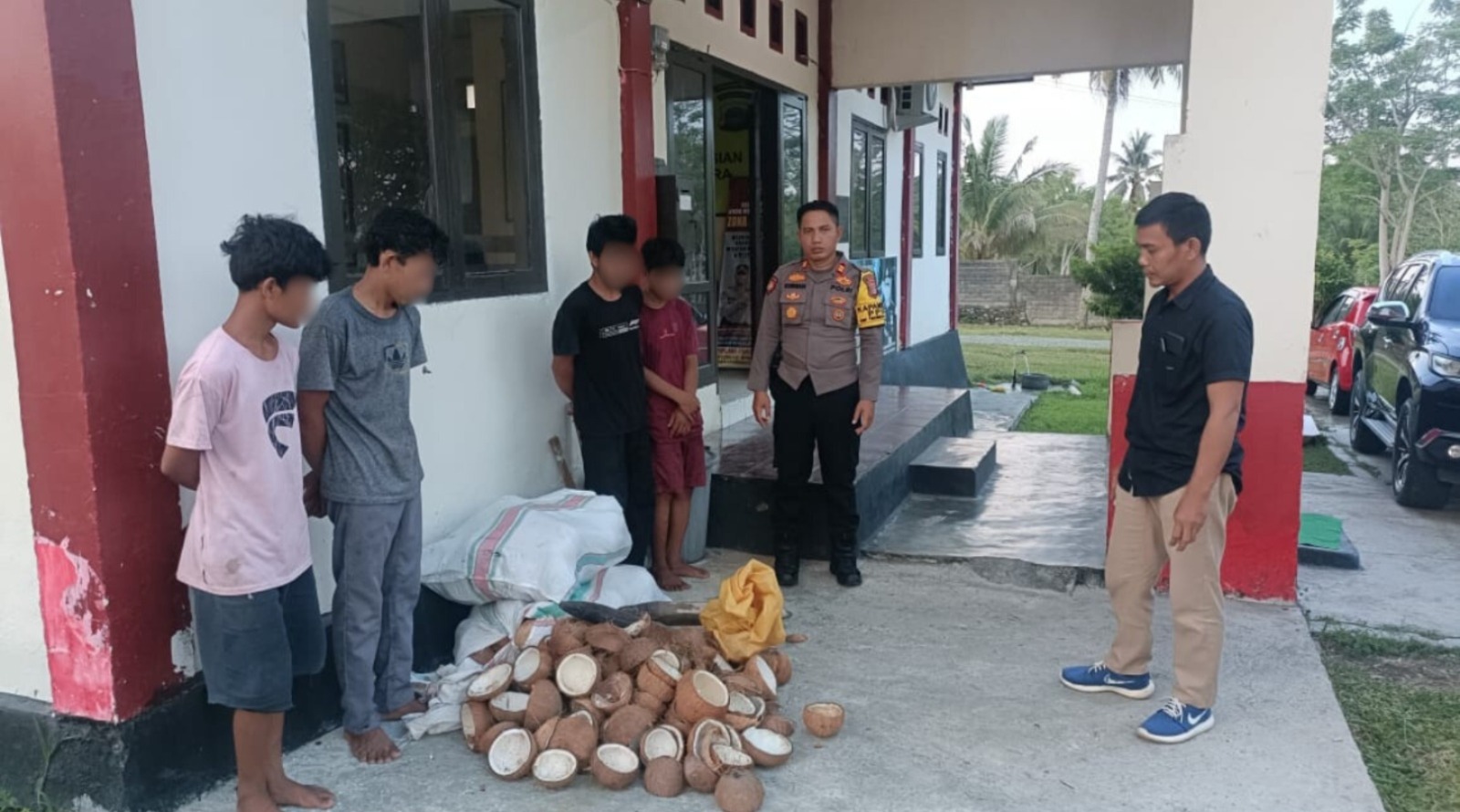 JP. Poso, 26 September 2024 – Polsek Poso Pesisir Utara berhasil mengamankan empat pelaku pencurian kelapa di Desa Trimulya, Kecamatan Poso Pesisir Utara, pada Rabu (25/09). Para pelaku diketahui mencuri 166 buah kelapa yang telah dikupas, 100 buah kelapa yang belum dikupas, serta dua buah alat pengupas kelapa atau “pasunggi.”