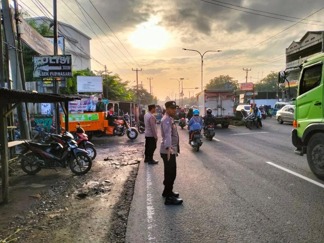 Rutinitas pagi hari dan guna kelancaran arus lalu lintas Polsek Purwasari Polres Karawang rutin melaksanakan penjagaan pengaturan (Gatur) lalu lintas Sore hari.
