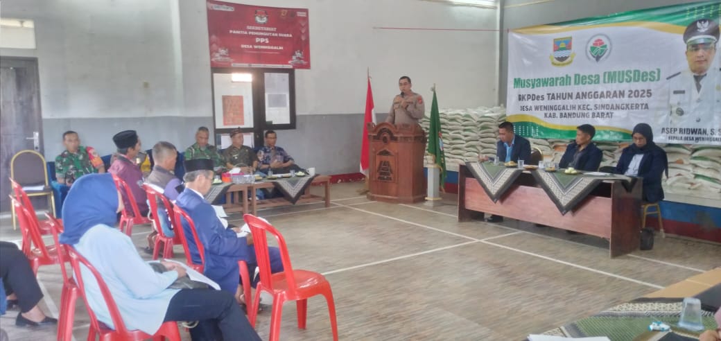“Dalam sambutanya Kapolsek Sindangkerta Akp.Deden Indrajaya,Menghimbau kepada seluruh peserta Musdes agar benar-benar mengikuti dan memperhatikan arahan² / materi yang disampaikan pada giat Musdes RKPDes Tahun Anggaran 2025 Desa Weninggalih Kecamatan Sindangkerta Kabupaten Bandung Barat (KBB) dan menghimbau pula kepada peserta Musdes agar menyampaikan pesan atau mengajak warga masyarakat desa Weninggalih lainnya untuk bekerja sama dalam menjaga kondusifitas kamtibmas jelang Pilkada 2024”. ucapnya.