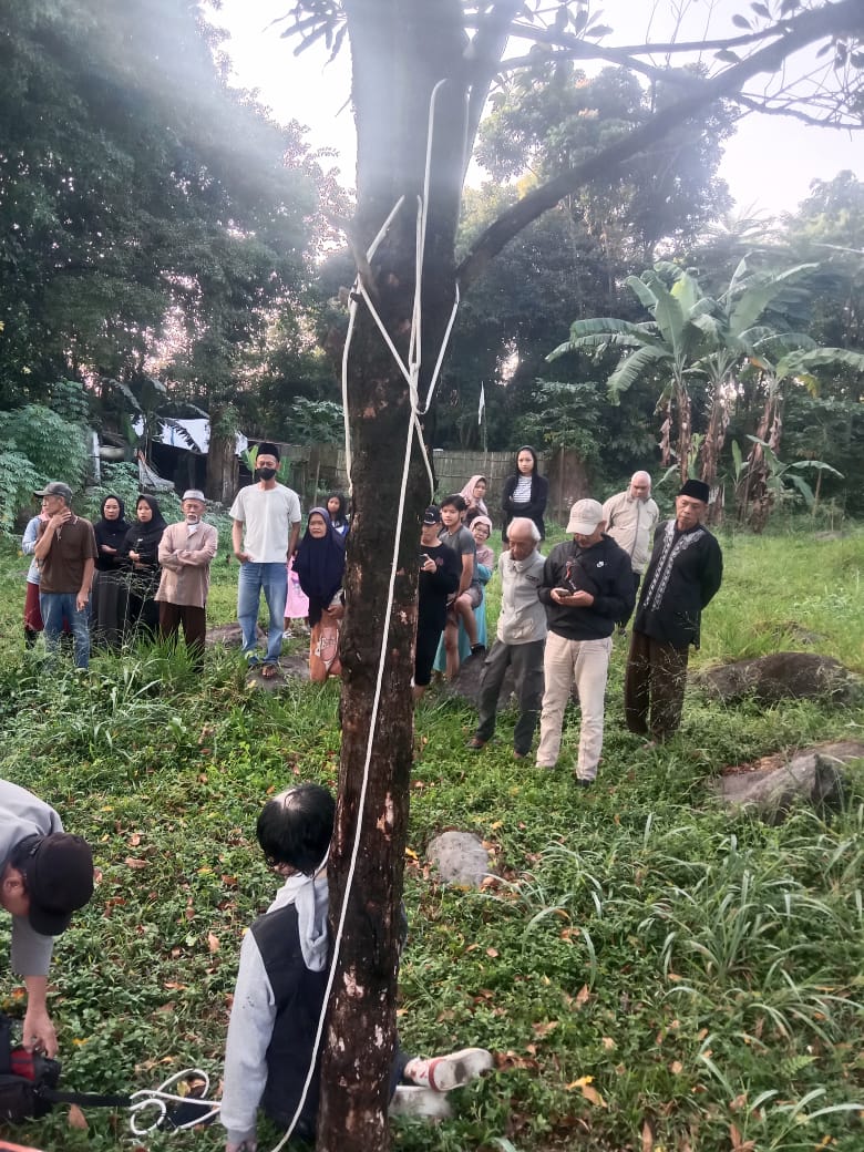 – korban sudah meninggal dunia dalam keadaan leher diikat memakai tali nilon warna putih ditutupi dengan slayer putih, tali nilon di ikat simpul di bagian belakang leher korban yang di ikatkan ke batang pohon cengkeh.