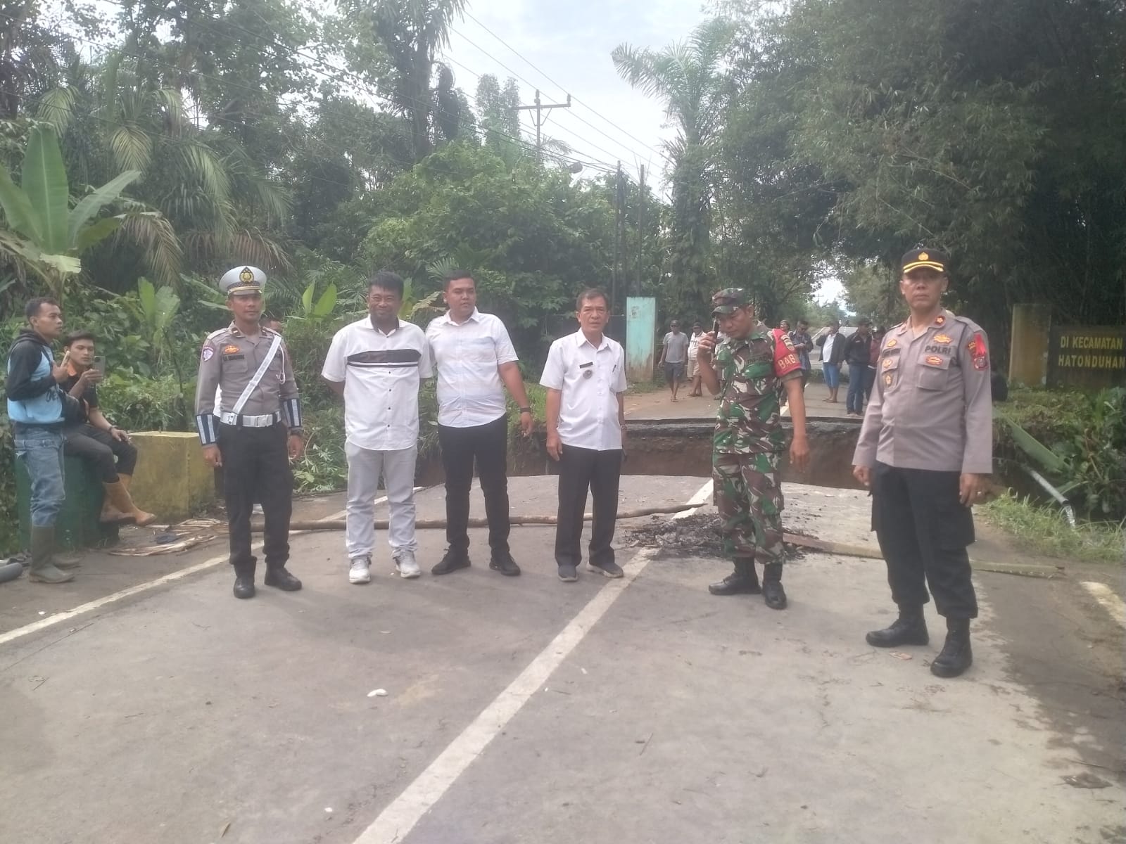 Pada hari Rabu, 6 November 2024 pukul 08.00 WIB, Kapolsek Tanah Jawa KOMPOL Asmon Bufitra bersama Camat Tanah Jawa dan anggota Koramil 10 Balimbingan mendampingi tim dari Dinas PUPR Provinsi Sumatera Utara untuk melakukan inspeksi. Dalam pengecekan tersebut, mereka menemukan bahwa longsoran yang menutupi gorong-gorong telah menyumbat aliran air, memperparah kerusakan jembatan. Sesuai hasil koordinasi, pembersihan gorong-gorong akan dilakukan hari ini, dan perbaikan jembatan dijadwalkan mulai besok, 7 November 2024.