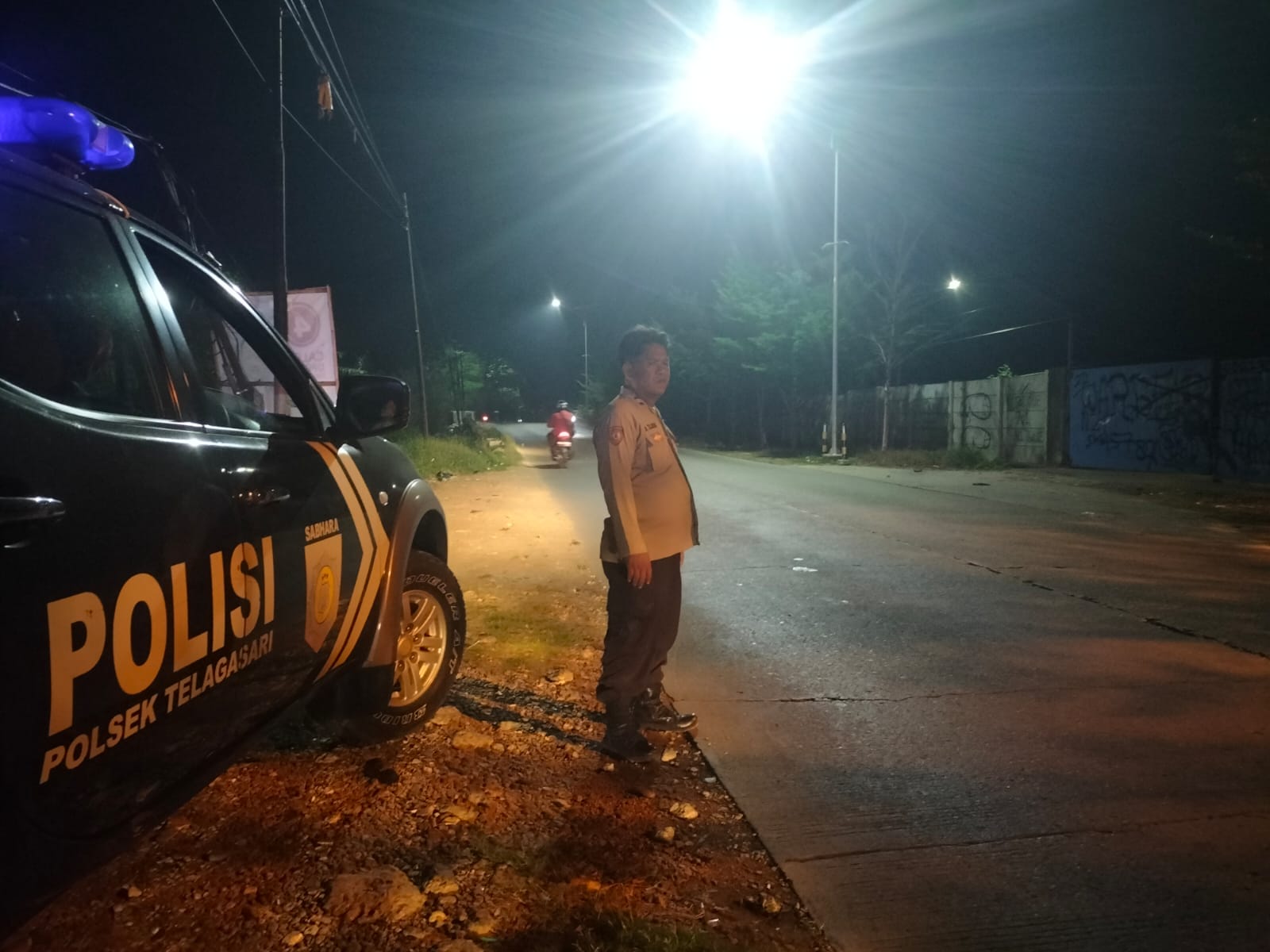 Aiptu Asep, personil Piket Polsek Telagasari Polres Karawang susuri wilayah perbatasan Telagasari-Tempuran yang disinyalir menjadi wilayah rawan kejahatan. Kegiatan ini dimaksudkan untuk memberi rasa aman dan nyaman kepada masyarakat yang melalui wilayah tersebut ketika malam hari.