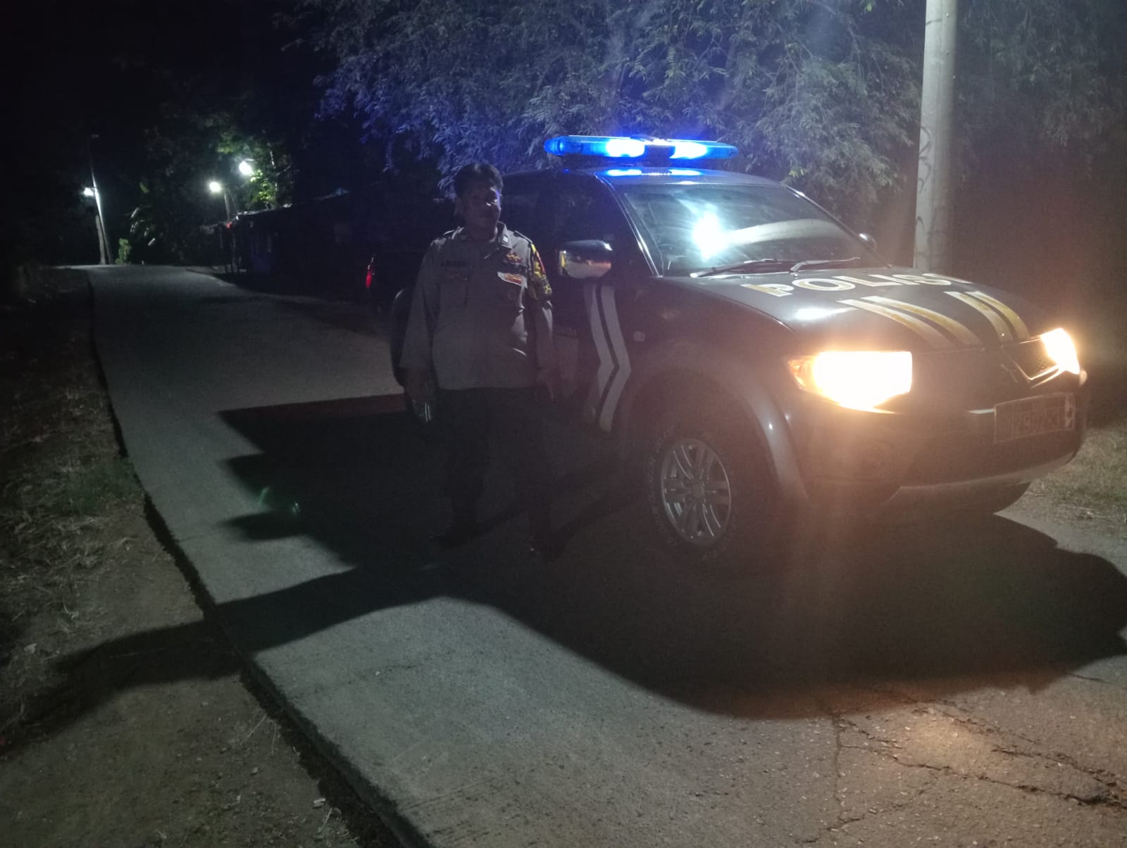 Aiptu Asep, personil Piket Polsek Telagasari Polres Karawang susuri wilayah perbatasan Telagasari-Tempuran yang disinyalir menjadi wilayah rawan kejahatan. Kegiatan ini dimaksudkan untuk memberi rasa aman dan nyaman kepada masyarakat yang melalui wilayah tersebut ketika malam hari.