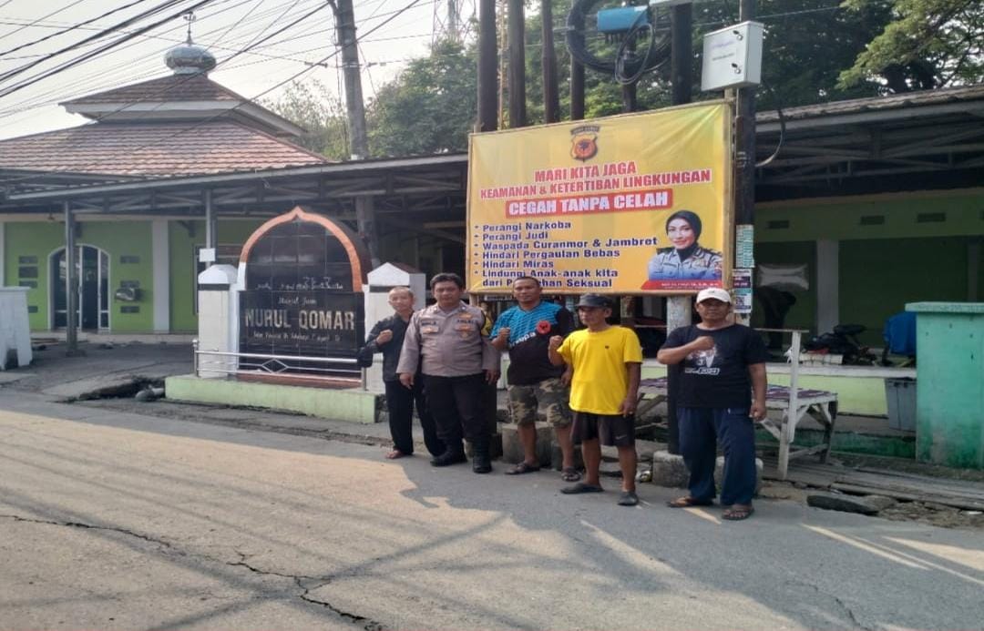 JP Polres Karawang – Bhabinkamtibmas Polsek Telukjambe Timur Aiptu Budi Riyadi bersama masyarakat pasang spanduk imbauan Kamtibmas, Selasa (22/10/2024).