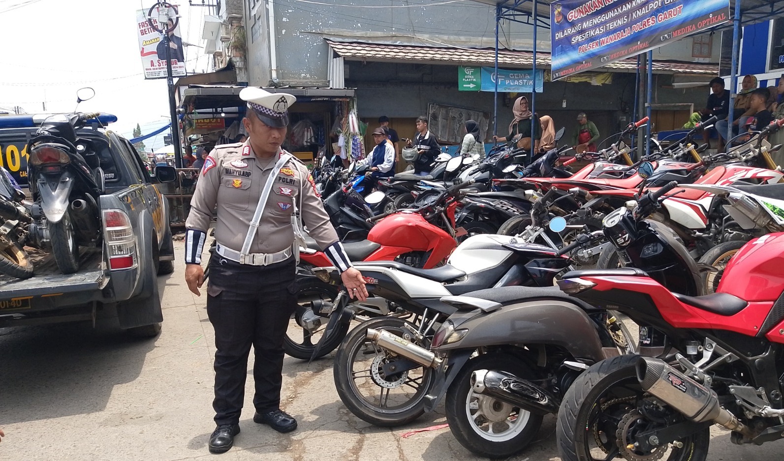 Polsek Wanaraja melakukan penindakan sebanyak 40 unit kendaraan roda dua yang memakai knalpot bising / tidak sesuai dengan spesifikasi.